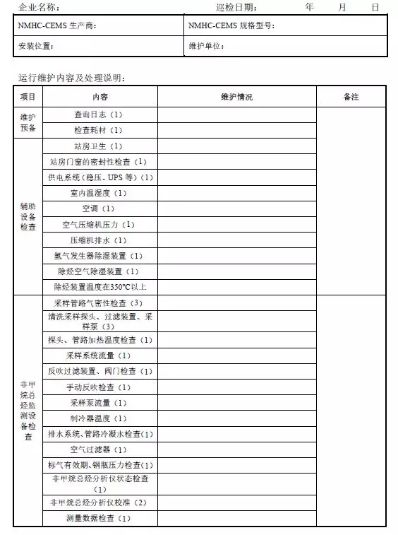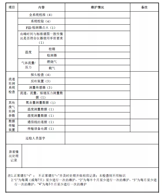 VOCs在線監(jiān)測系統(tǒng)日常巡檢記錄應(yīng)包括檢查項(xiàng)目、檢查日期、被檢項(xiàng)目的運(yùn)行狀態(tài)等內(nèi)容,而且每次巡檢應(yīng)記錄并歸檔,日常巡檢時(shí)間間隔不超過7d。