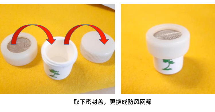 2. 旋下防風(fēng)篩,換回密封蓋,確保密封嚴(yán)密;