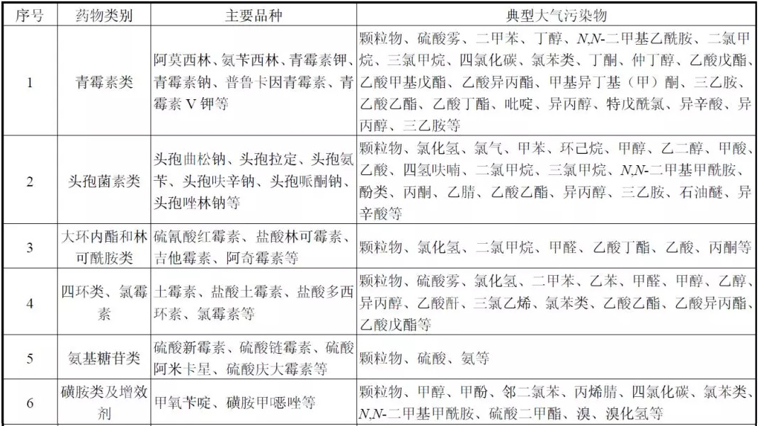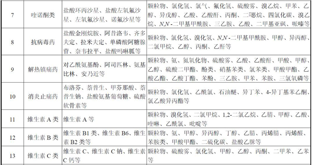 下表為制藥行業(yè)生產過程中排放的典型VOCs污染物: